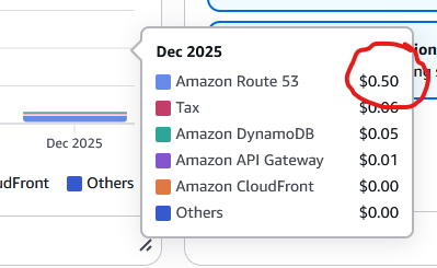 - Look for the line 'Route 53 DNS: [your hosted zone domain]' - if that is there, you won't be charged the US$0.50 per month anymore for this hosted zone 🥳