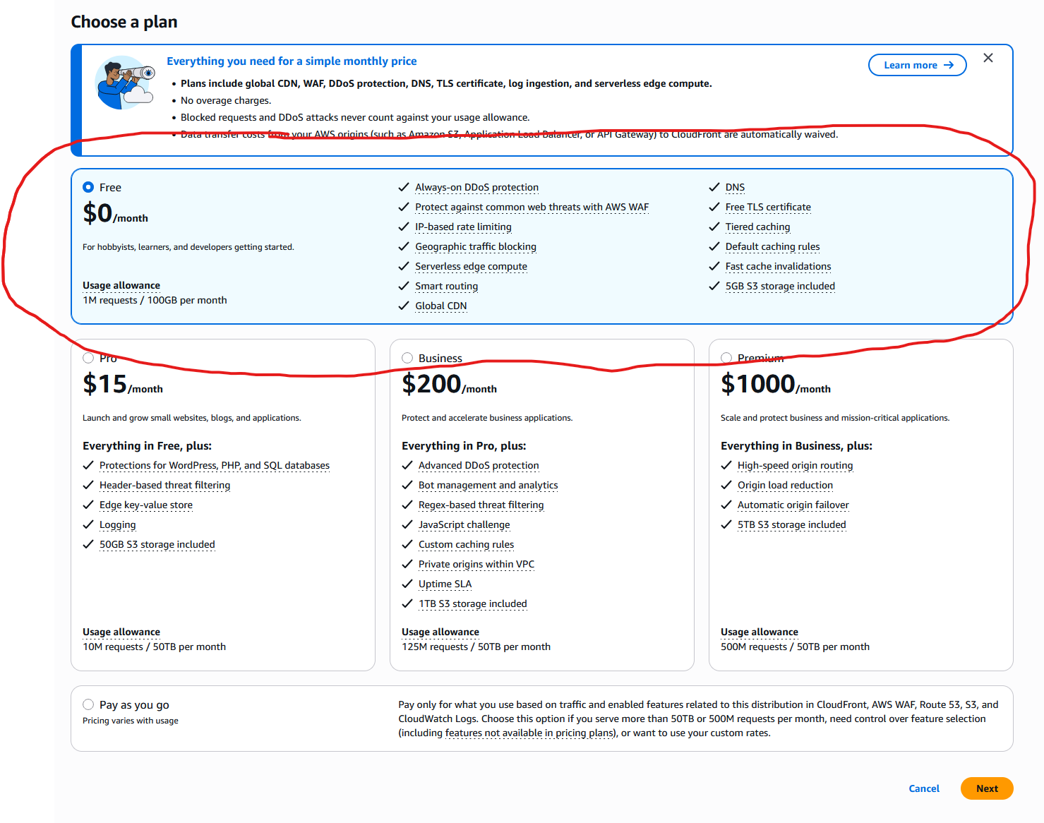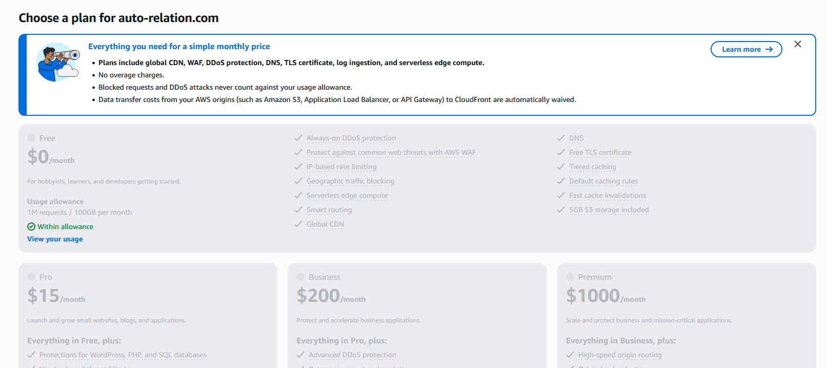 That's all we need to do. If you are already using CloudFront, you could of course also change any existing CloudFront distribution to use the flat-rate pricing.